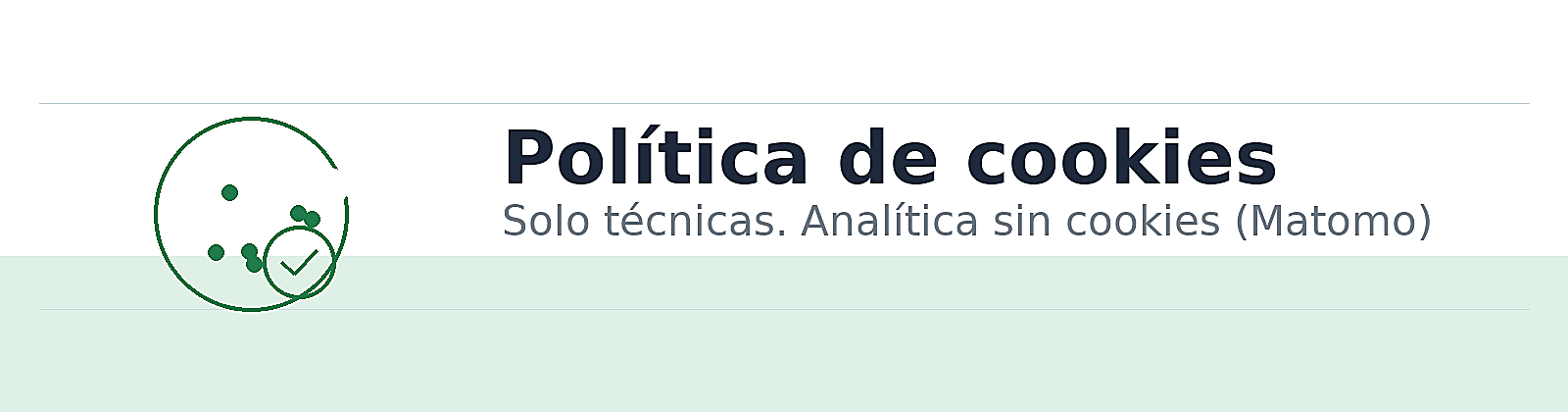 Analítica: usamos Matomo en modo sin cookies, con IP anonimizada (≥3 bytes) y sin identificadores personales. No instalamos cookies de analítica.