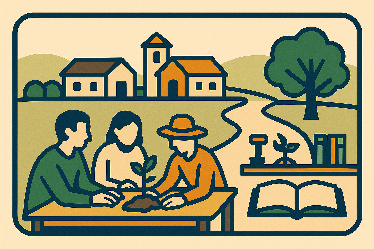 La gratuidad es la semilla de la confianza. Habrá jornadas abiertas, visitas guiadas sin coste, biblioteca de herramientas, banco de tiempo y materiales didácticos libres. Compartir sin pedir nada a cambio crea una cultura donde dar y recibir es natural; luego llegan las colaboraciones, las compras y los proyectos comunes. Transparencia en cuentas y decisiones, para que cualquiera entienda el porqué de cada paso.